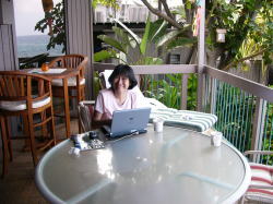 Today the weather was fine, so I tried to take a picture of sunset from the veranda. We took a walk in the Outrigger Kanaloa at Kona.