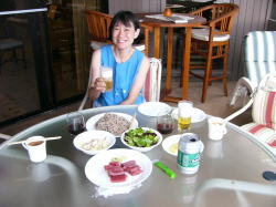 We stopped at the Keahou shopping center and bought food and beverage and gifts. It cost more than 50 dollars. Returning the condominium, my wife prepared for "Sohmen". After that, we again went to pool nearby. There were only one couple and it was very quite and swam. There was a jaguji bath and it was very comfortable.