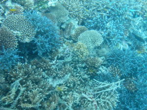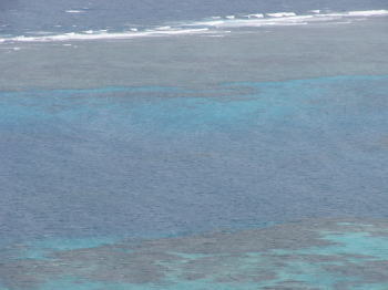 白波が立つ手前で停泊してさんご礁をみせてもらいました。 いろいろなお魚がいて、船のお兄さんが名前の説明もしてくれました。