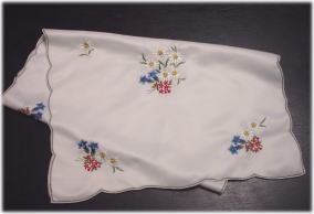 あとは刺繍製品。 テーブルセンターや花瓶敷きなど花柄の綺麗なものがあります。軽いし嵩張らないので